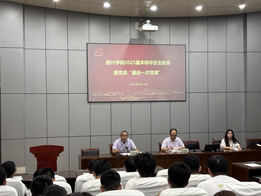 6月19日,数计乐鱼网页版登录入口党委开展“数青春 心向党”2025届毕业生党员“最后一次党课”活动。乐鱼网页版登录入口党委书记何振波与全体毕业生党员一起参加活动。活动由院党委副书记孙晓民主持。
