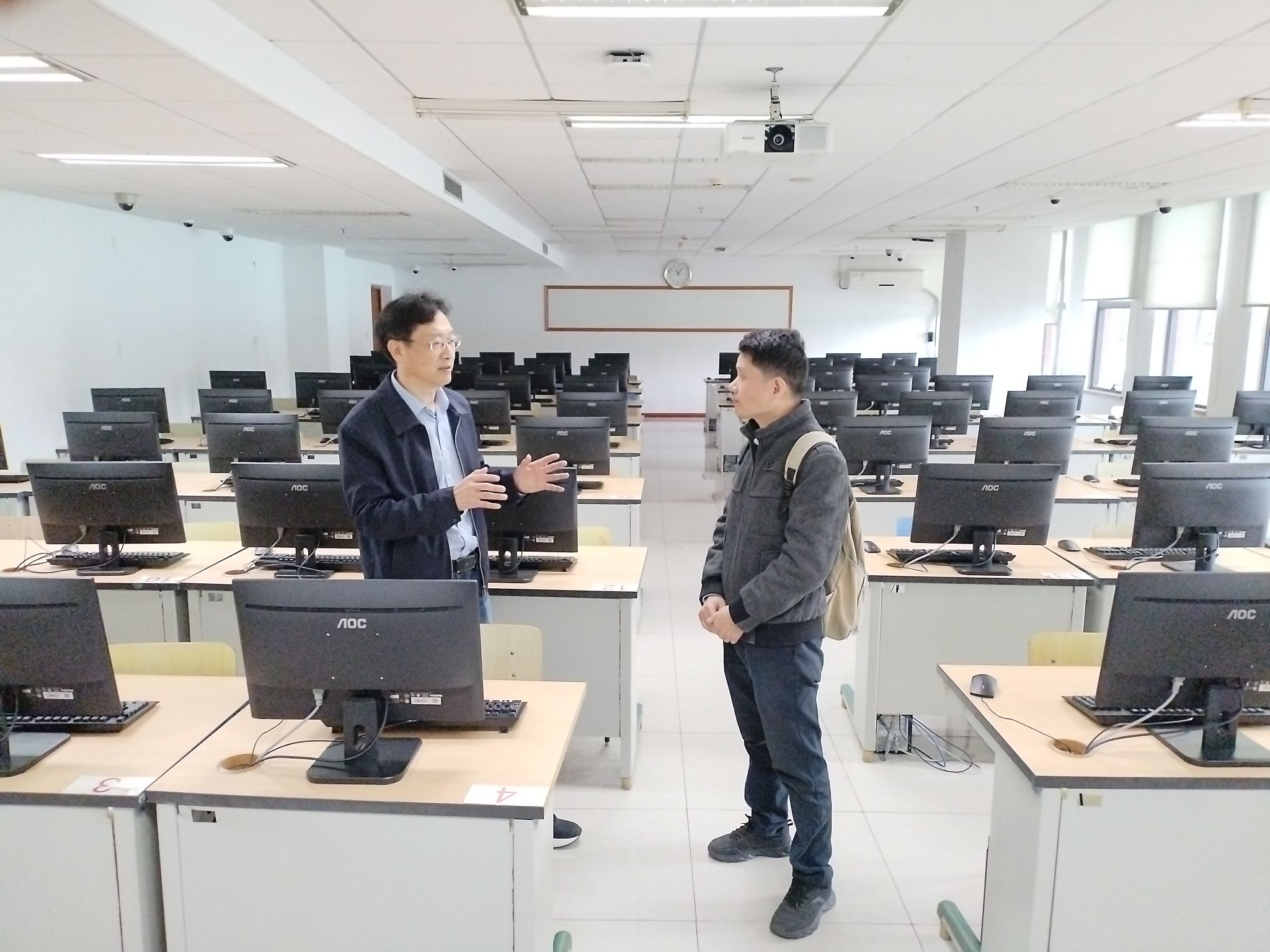 座谈会后,在浙大计算中心老师的引导下,实验教学中心党员一行实地参观了计算中心的公共机房与专业机房。宽敞明亮、可同时容纳200余人进行上机操作的大型实验机房给大家留下了深刻印象。大家还观摩了由计算中心自主研发的“上机引导系统”,学生通过刷卡快速获取个人上机区位、任课教师及课程详细信息,该系统有效提升了机房管理效率与师生使用体验。参观过程中,双方还就大型机房运维管理、实验课程安排保障、各类国家级及校级考试的组织实施等工作方法与技术细节进行了现场交流与探讨。