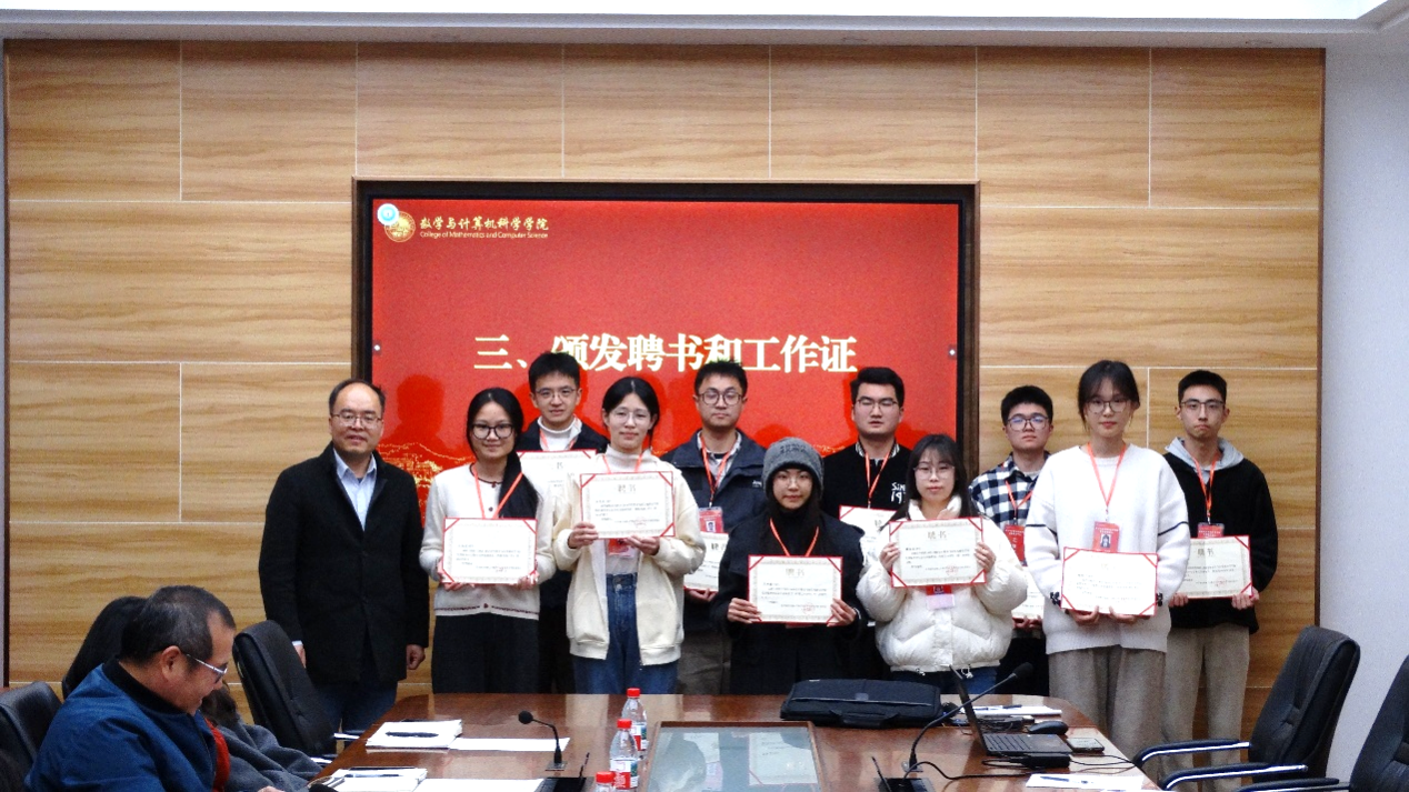 会上,何振波为党群服务中心主要负责人颁发聘书和工作证。中心副主任杨成作为学生代表发言,承诺发挥党建引领带头表率作用。