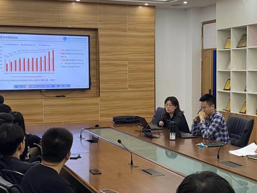 各学位点负责人分别介绍了各学位点的情况与特色,以及近年来应届考研录取率和本校考研升学率,以帮助同学们认识本校考研的优势与前景。
