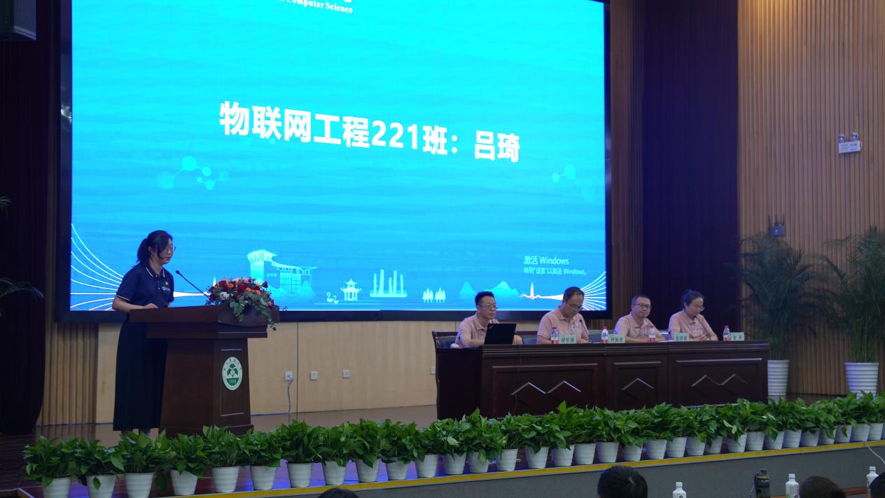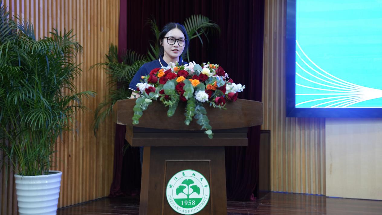 应用统计学教师邹金汇作为教师代表发言,她以自身求学经历为例,鼓励同学们主动学习和建构性学习,保持对知识的敬畏和对问题的好奇,共同用智慧和汗水书写数计人的辉煌篇章。在校生代表物联网工程专业221班吕琦同学、本科生新生代表计算机241班缪欣颐同学、研究生新生代表数计研241班朱润昊同学先后发言。