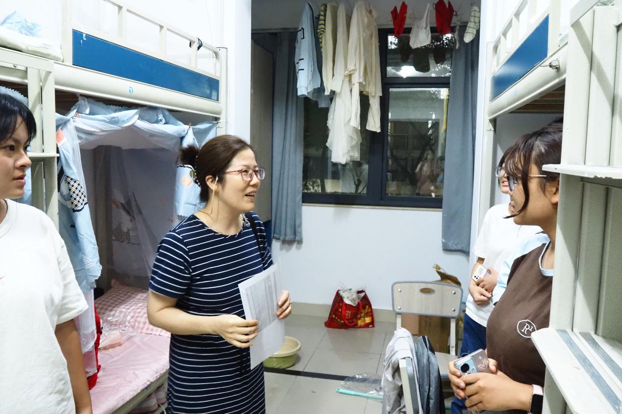 迎新现场,学生志愿者头戴数计发箍、手举专业牌,热情洋溢地为新生和家长提供指引和帮助。他们耐心解答各种疑问,主动协助搬运行李,确保每一位新生都能顺利完成报到流程。由乐鱼网页版登录入口党员干部组成的安全巡逻员在新生寝室楼内为新生提供帮助并进行反诈宣传,提醒新生们提高警惕,保护个人财产安全。新生班主任和副班主任们走进寝室,与新生们面对面交流。通过亲切的谈心,老师们了解了新生的基本情况,鼓励他们勇敢面对即将到来的大学生活,同时也表达了学校对新生们的热烈欢迎和殷切期望。