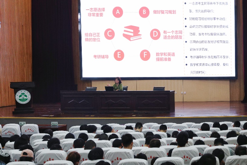 戴丹老师就今年的考研形势进行了分析,重点介绍了乐鱼网页版登录入口硕士学位点的建设情况以及近几年的考研情况。鼓励学生要给自己正确的定位,重视一志愿的选择,做好复习规划并祝愿大家都能考取满意的院校。
