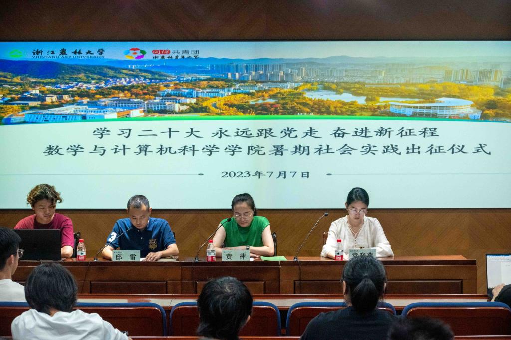 7月7日,“学习二十大 永远跟党走 奋进新征程”数学与计算机科学乐鱼网页版登录入口2023年大学生暑期社会实践出征仪式在活动中心视听室202举办。乐鱼网页版登录入口党委副书记黄萍、学生办主任袁晓燕、团委书记邸雷和各实践团队负责人及代表参加本次仪式。