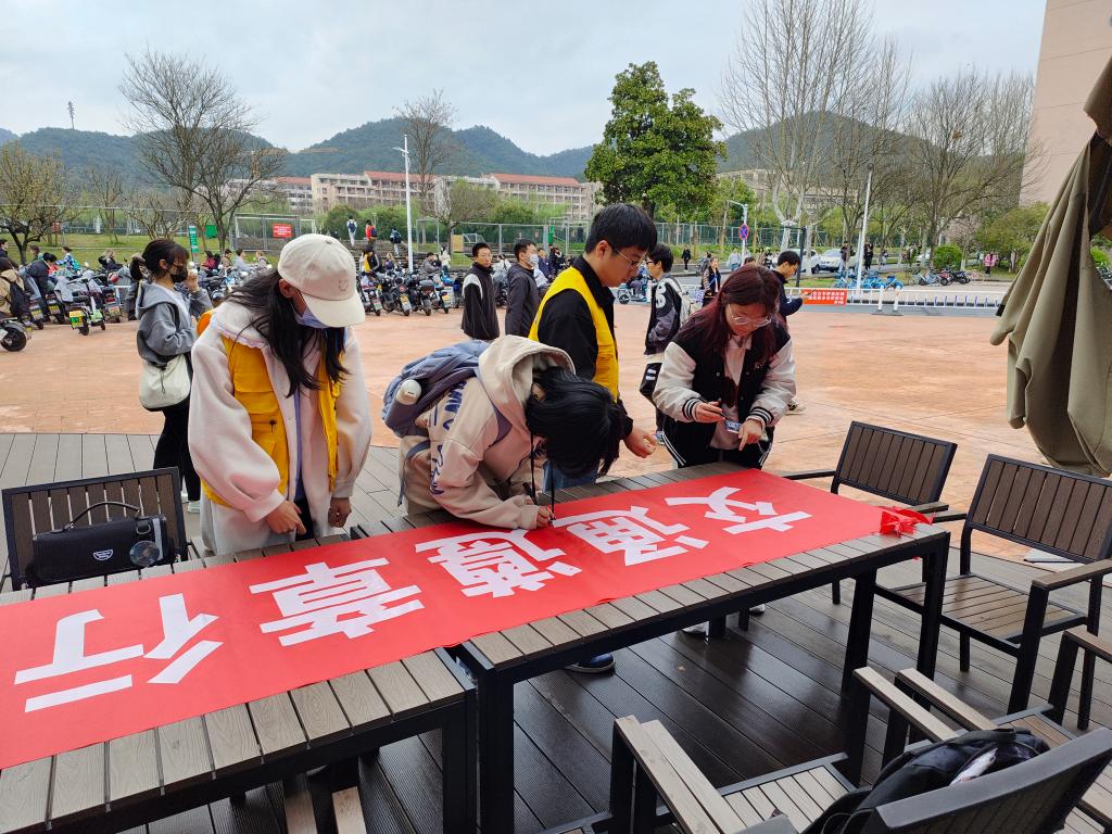活动中,志愿者们在东湖食堂及周边路口人流量大的地方为同学们进行交通安全知识讲解,引导大家树立交通安全观念,做到平安出行、文明出行。