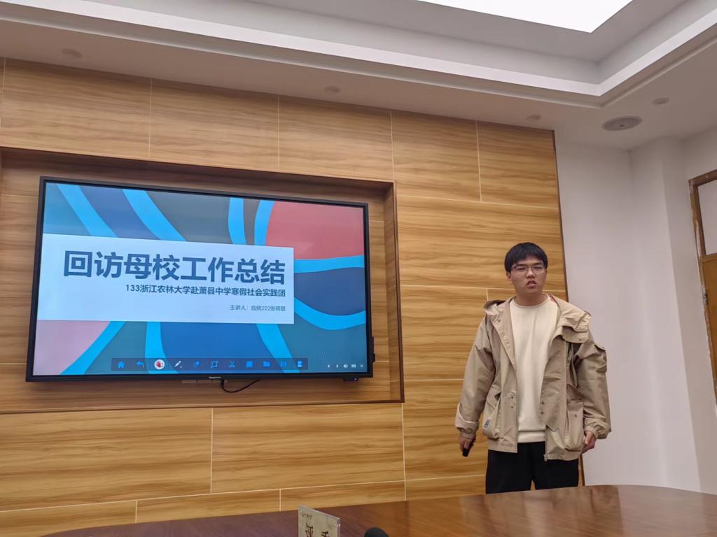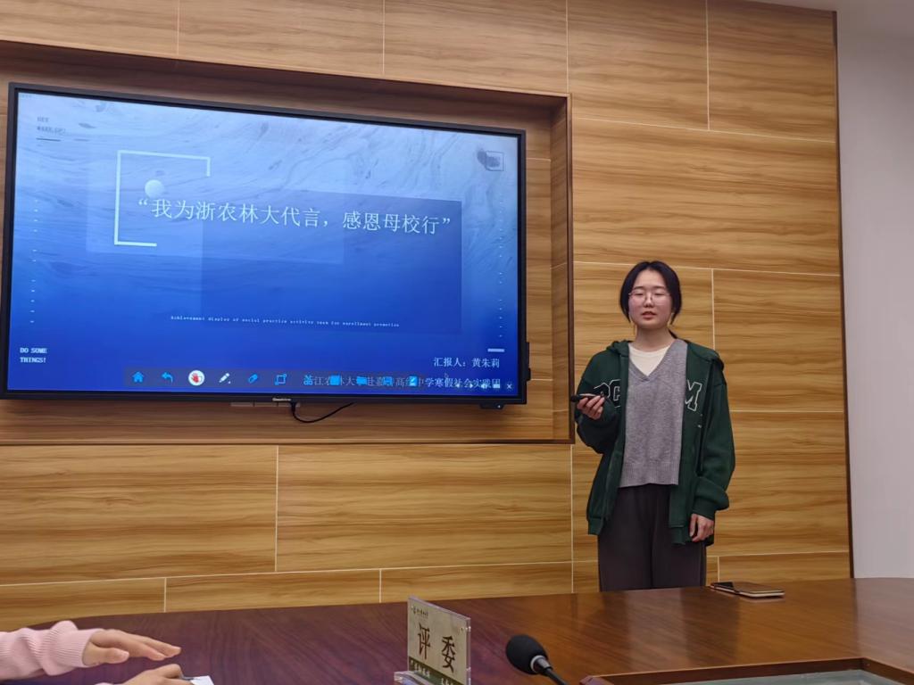 邸雷对各实践团队的工作进行了详细点评,充分肯定了同学们在本次社会实践中做出的努力和取得的成绩,同时对各团队在实践过程中存在的问题和不足之处并提出改进建议。他表示,本次寒假社会实践活动内容丰富,形式多样,既加强了同学们对社会实践工作的认识,增强了本领,提高了沟通与表达能力,也使更多的高中学子和家长了解了浙江农林大学,提升了学校的知名度。希望同学们以实干担当的奋斗姿态投身于社会实践活动中,不断在社会实践中磨练自己,实现自我价值的提升。