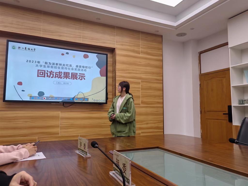此次寒假社会实践活动以“我为浙农林大代言,感恩母校行”为主题,通过回访母校就学校招生政策、学校概况、专业设置、办学特色、校园文化等方面进行招生宣讲,在宣讲中增强了学生的感恩之情、爱校之情,增进了我校与学生生源地高中的进一步联系,产生了积极的招生宣传效应。