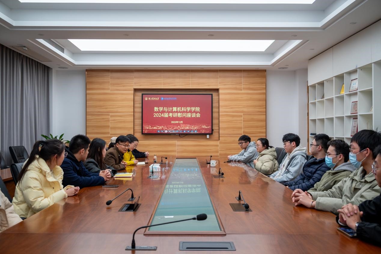 12月7日中午,数学与计算机科学乐鱼网页版登录入口在学11-305召开2024届考研慰问座谈会。乐鱼网页版登录入口常务副院长冯海林、党委副书记黄萍、毕业班辅导员陈瑞珂和2024届考研学生代表参与会议。此次座谈会旨在为正在备战考研的同学们加油打气,坚定冲刺信心。