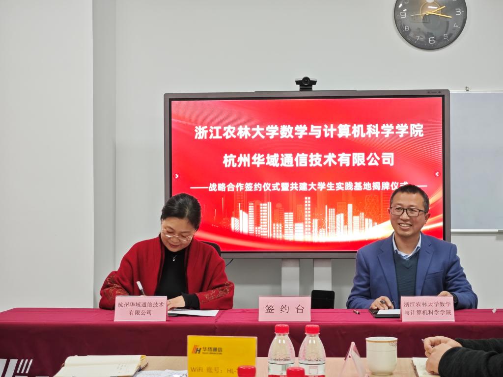 近日,数计乐鱼网页版登录入口与杭州华域通信技术有限公司在青山湖科技园华域公司会议室举行了战略合作协议签约仪式暨大学生实习实践基地揭牌仪式。乐鱼网页版登录入口党委书记冯金明、副院长张洪涛,华域通信技术有限公司董事长钱静,以及双方相关部门、专业负责人共同出席了签约仪式。