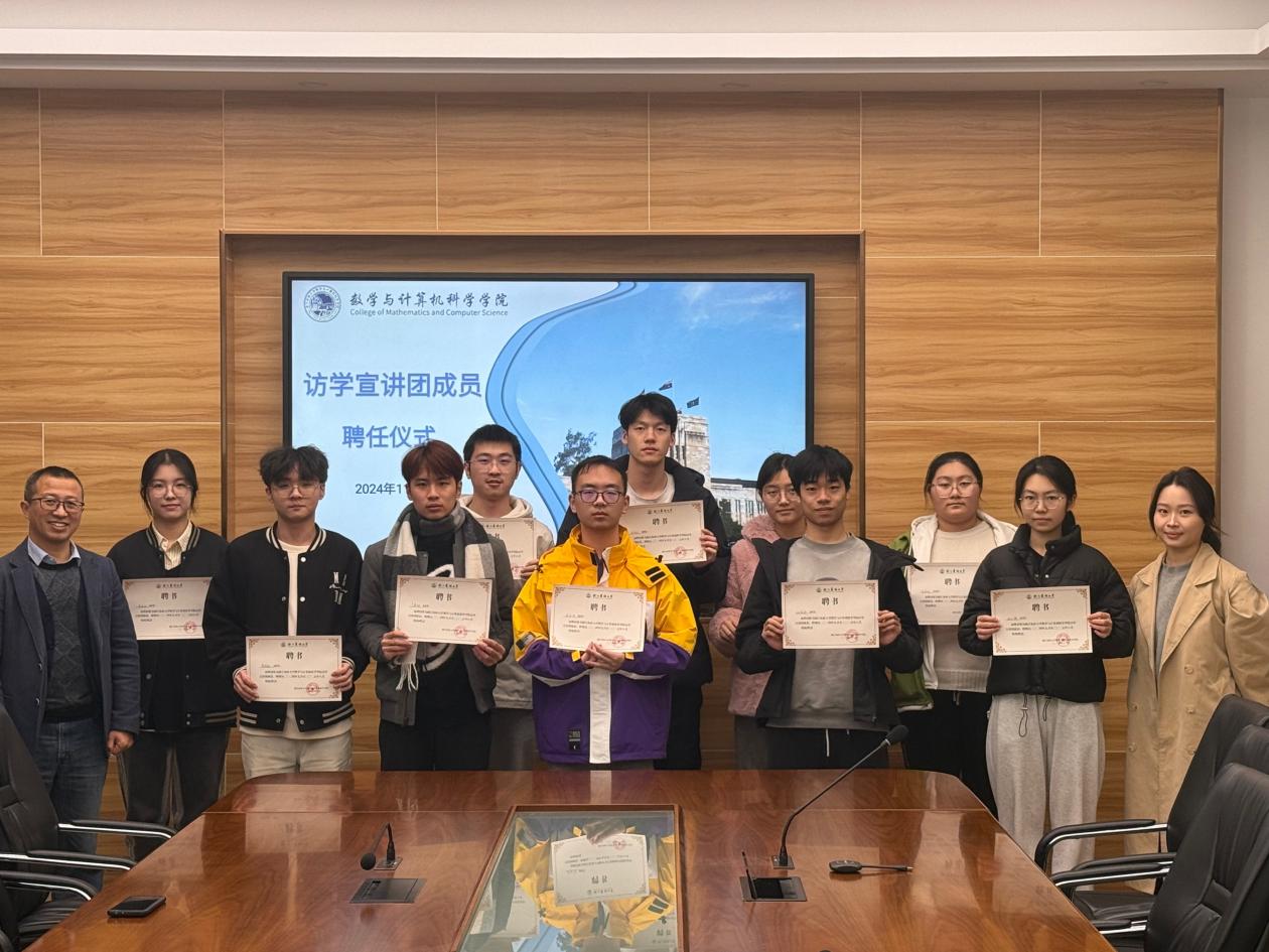 数计乐鱼网页版登录入口于11月26日在学11-304成功举办了访学宣讲团2024-2025年度培训会议及成员聘任仪式。乐鱼网页版登录入口副院长张洪涛、辅导员陈瑞珂及访学宣讲团成员代表参加仪式,仪式由陈瑞珂主持。经过选拔,16名优秀学生被正式聘任为宣讲团成员。