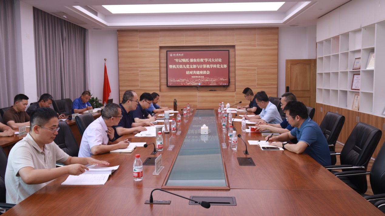 6月17日下午,数计乐鱼网页版登录入口举行“牢记嘱托 强农有我”学习大讨论暨机关第九党支部与计算机学科党支部结对共建座谈会。学校教务处处长、机关第九党支部书记郭建忠,质控中心、教发中心主任尹国俊,数计乐鱼网页版登录入口院长冯海林,乐鱼网页版登录入口党委书记何振波和党员教师代表参加活动。