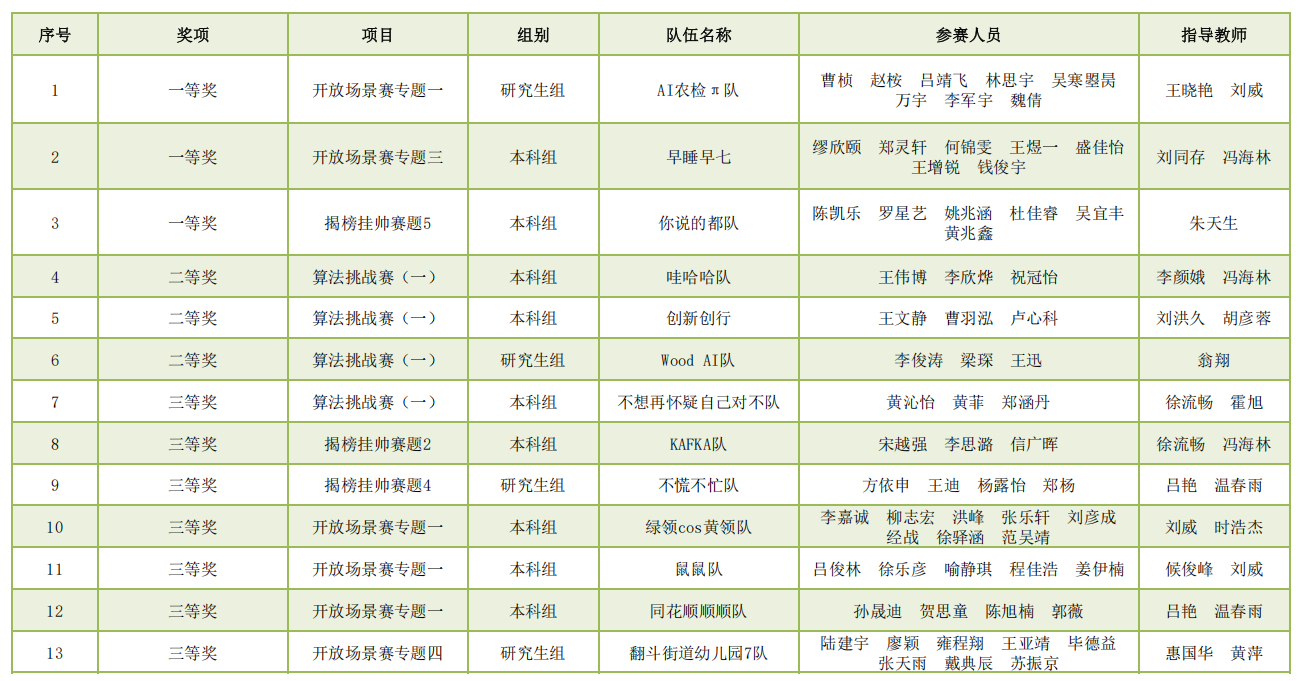 我校在第一届浙江省大学生人工智能竞赛中获奖名单